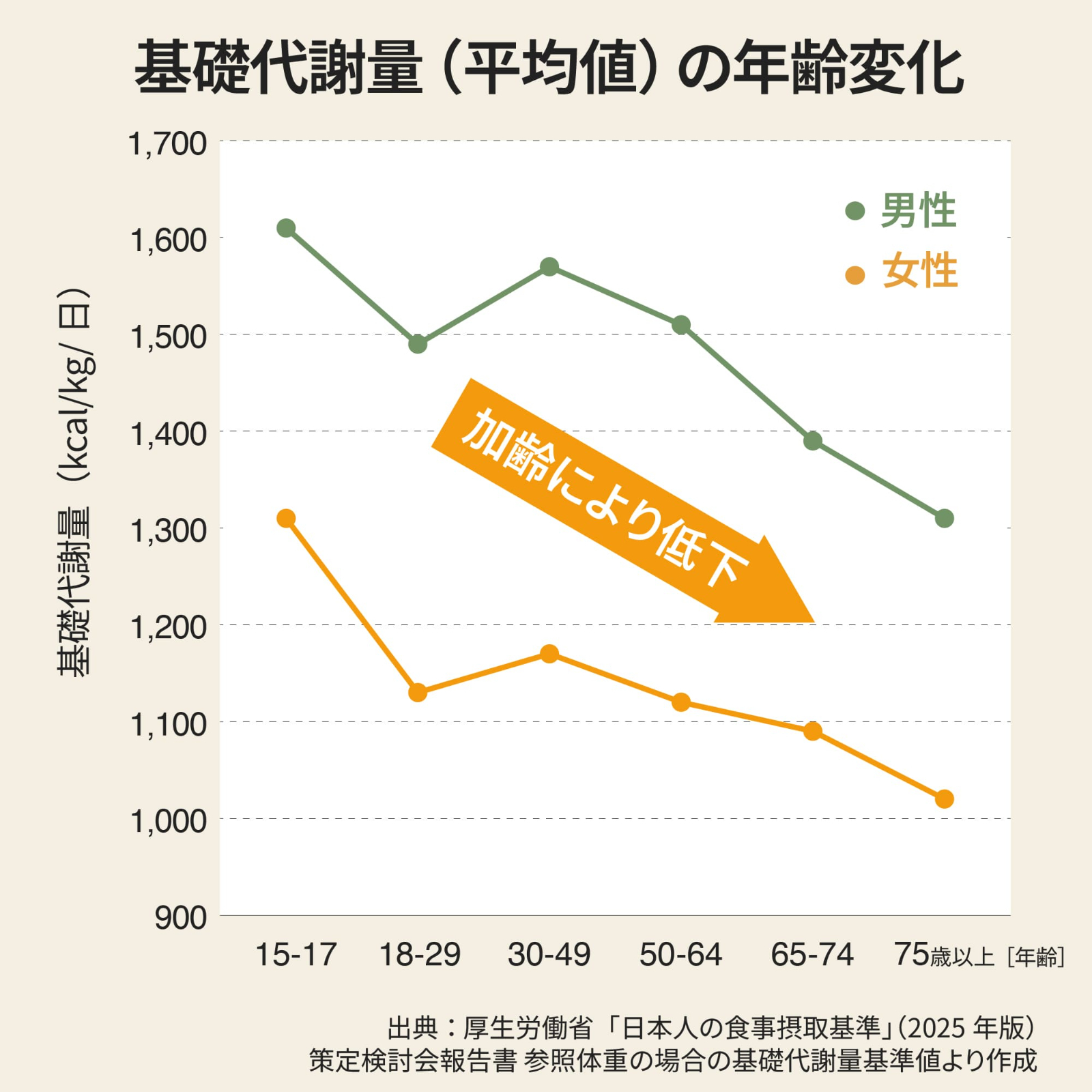 でも、実は、 この基礎代謝は年齢とともに下がってしまうんです!