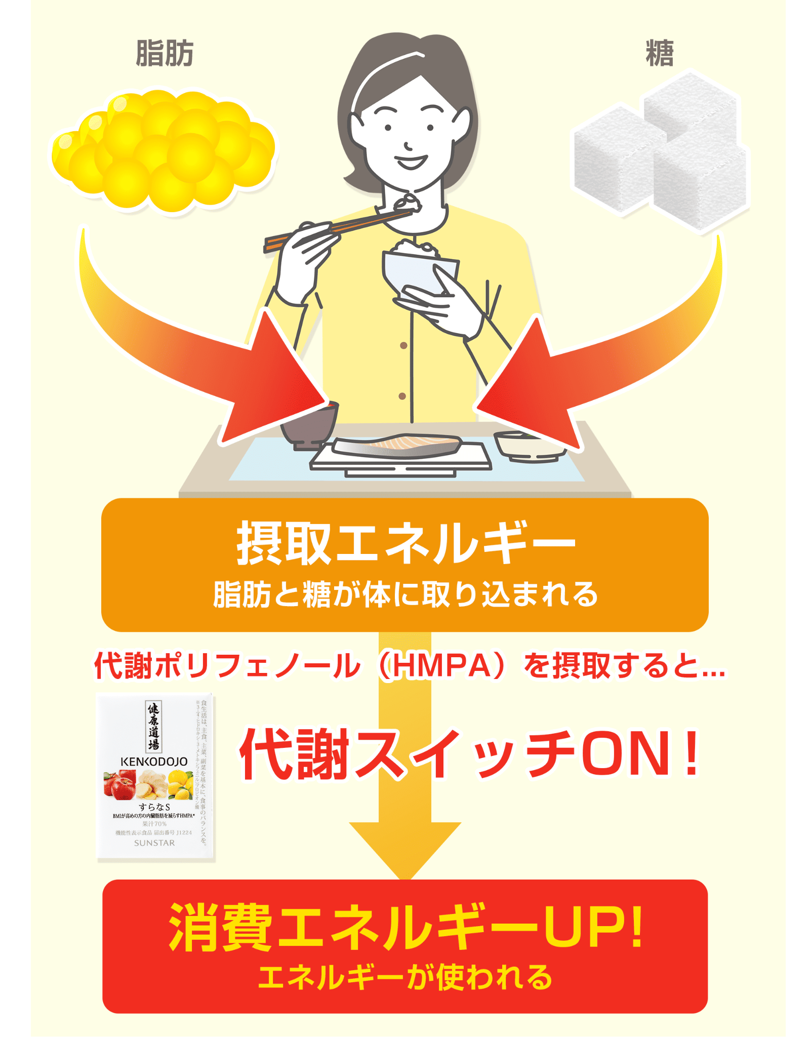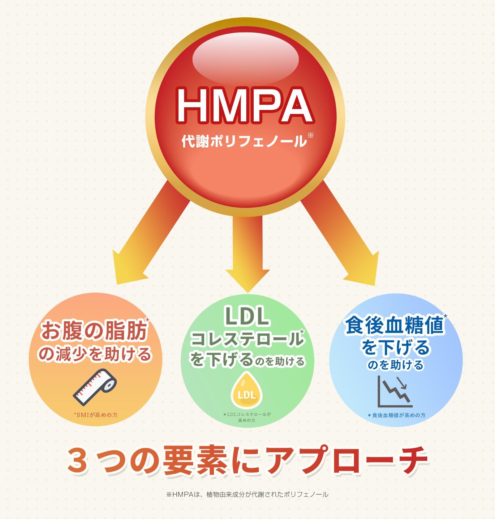 代謝ポリフェノールHMPA ※の力で代謝を上げてトリプルアプローチ!