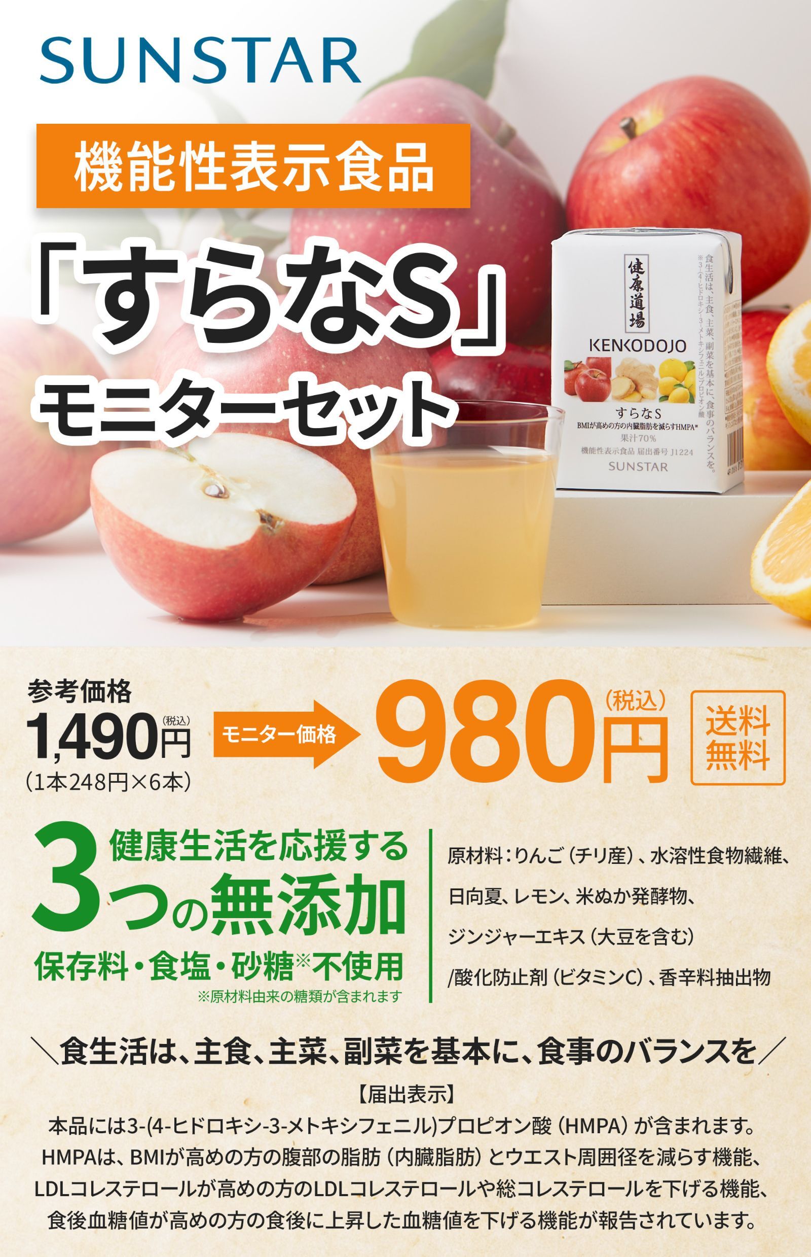 そこで、おすすめなのが、代謝ポリフェノールHMPA※を直接摂れるドリンク「すらなS」。