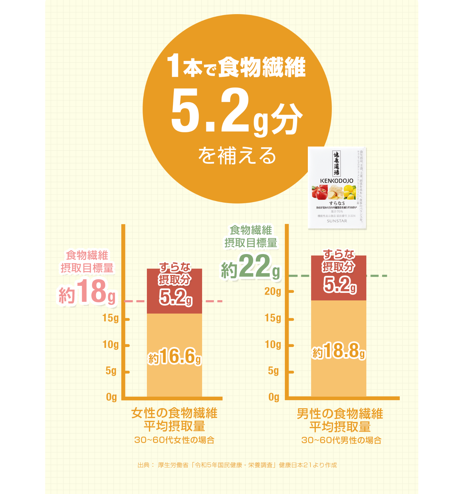 すらなSは、この1本で1日に不足する食物繊維を補うこともできるんです!